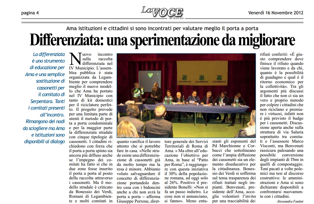 La differenziata è uno strumento di educazione per AMA e una semplice sostituzione di cassonetti per il comitato di Serpentara. Tanti i comitati presenti all’incontro. Rimangono dei nodi da sciogliere ma AMA e istituzioni sono disponibili al dialogo.